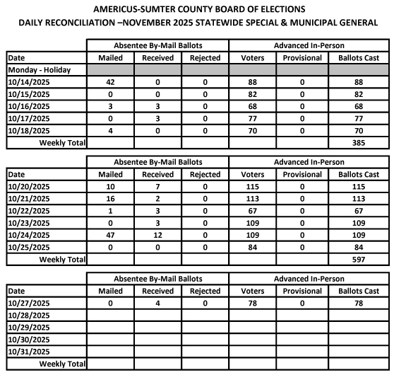 SUMTER COUNTY BOARD OF ELECTIONS AND VOTER